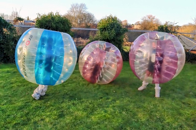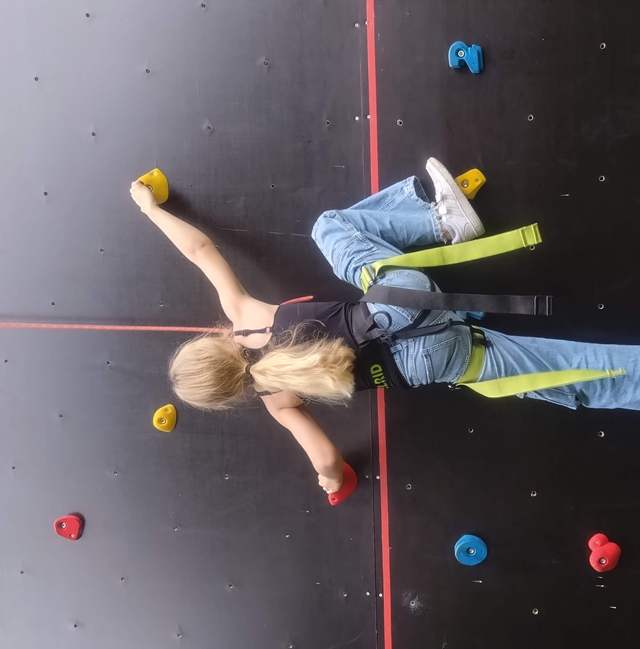 Vi har et højt klatretårn, hoppepude, slackline, airtrack, trampoliner og Bumper Balls i haven, hvor vi udfordrer tyngdekraften og modet! Vi har græs der giver plads til at spille rundbold, skovstratego og ”slås”...